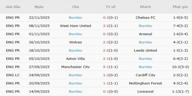 Trong khi đội bóng đáng buồn Wolverhampton Wanderers có tổng số bàn thắng thấp nhất (7), thì số bàn thắng kỳ vọng của Burnley là 8,7, là tệ nhất trong số các đội cùng loại tại Giải Ngoại hạng Anh 2025-26, và họ cũng là câu lạc bộ duy nhất chưa có 100 cú sút trong giải đấu mùa này.
