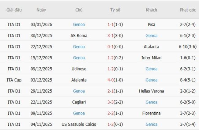 Phong độ hiện tại cho thấy Genoa có thể cần một phép màu để giành chiến thắng, sau khi chỉ giành được một điểm từ bốn trận đấu kể từ giữa tháng 12. Ở trận đấu gần nhất, đội bóng của Daniele De Rossi khởi đầu năm 2026 với chuỗi ba trận thua liên tiếp, và họ đã không thể đánh bại Pisa, một đối thủ cũng đang gặp khó khăn.