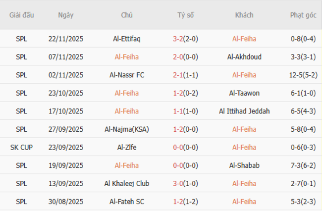 Phong độ gần đây - Al-Feiha vs Al-Hazm