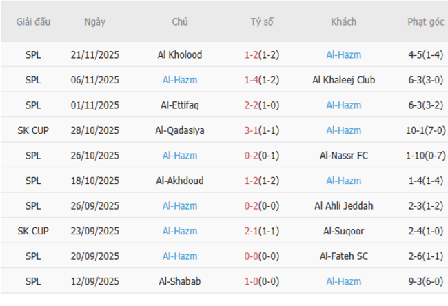 - Kết quả chung cuộc: Al-Feiha 2-1 Al-Hazm