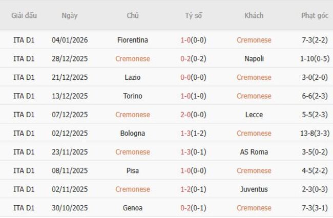 Phong độ của Cremonese