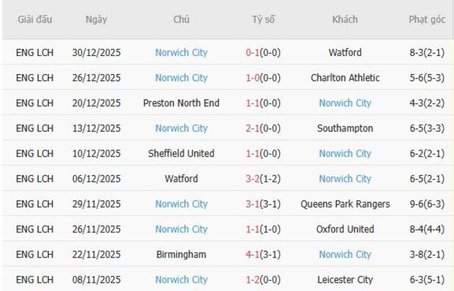 Phong độ của Norwich City