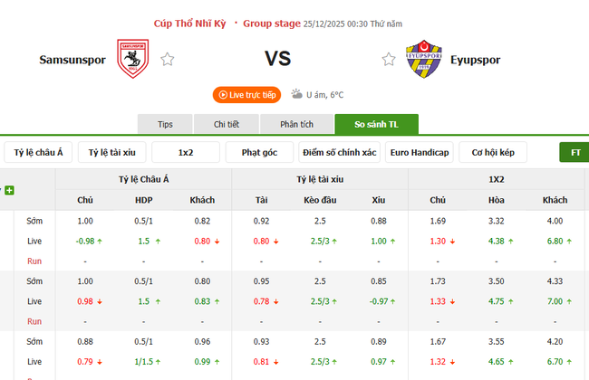 Trên đây là những nhận định và soi kèo bóng đá chuyên sâu cho màn thư hùng giữa Samsunspor vs Eyupspor diễn ra vào lúc 0h30 ngày 25/12/2025.