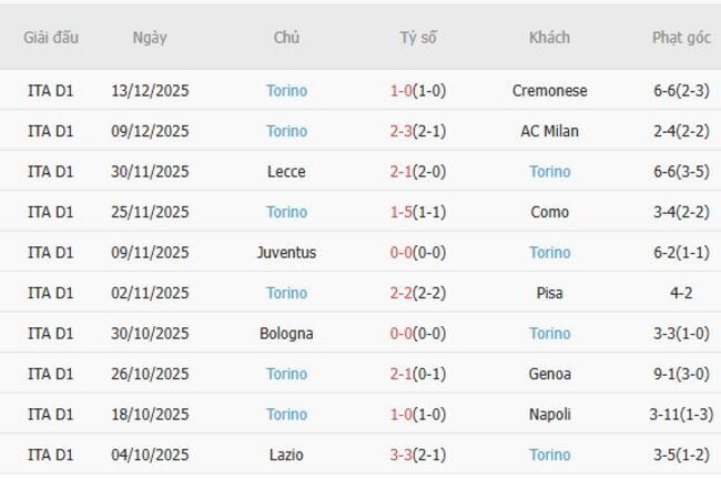 Dưới thời Marco Baroni , Torino đang thể hiện phong độ rất khó đoán, để thủng lưới 26 bàn ở Serie A nhưng vẫn giữ sạch lưới được 6 trận. Giờ đây, trong trận đấu sân khách cuối cùng của năm 2025, câu lạc bộ thành Turin sẽ cố gắng vượt qua thành tích tệ hại trên sân khách: họ chỉ giành được 6 điểm trong 21 điểm tối đa mùa này, đồng thời không thắng trận nào kể từ tháng 9.