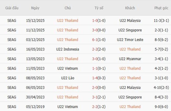 - Kết quả chung cuộc: U22 Thái Lan 0-1 U22 Việt Nam
