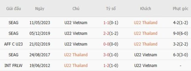 Thành tích đối đầu quá khứ giữa U22 Thái Lan vs U22 Việt Nam