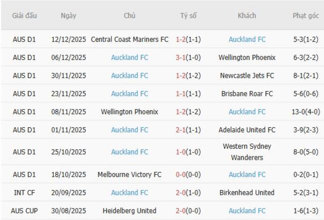 Auckland đã giành chiến thắng 2-1 trên sân khách trước Central Coast Mariners, đây là chiến thắng thứ hai liên tiếp của họ, và là chiến thắng thứ năm trong bảy trận đấu gần nhất (1 trận hòa, 1 trận thua). Trận thua duy nhất của họ trong chuỗi trận đó là trên sân nhà trước Newcastle Jets ở vòng đấu thứ sáu.