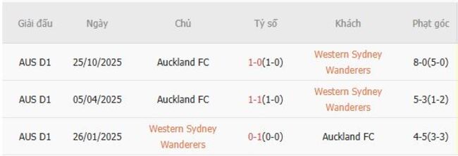 Thành tích đối đầu quá khứ giữa Western Sydney Wanderers vs Auckland FC